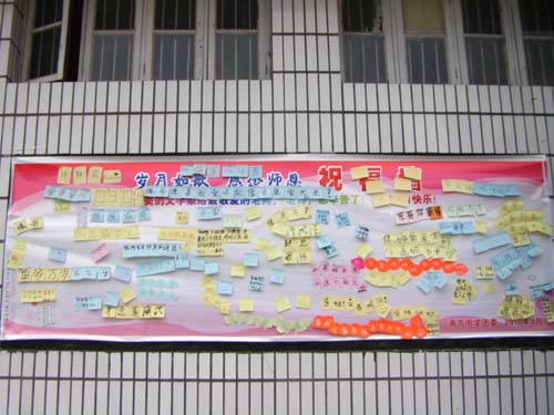 值得一提的是,千人诵师恩活动只是“庆教师节”系列活动之一,除此之外,团委倡议并发起了“最美的文字献给最敬爱的老师”祝福墙、祝福电子贺卡、主题黑板报、主题班会等活动,各班团支部还组织学生帮助打扫办公室,送任课老师一包润喉糖,讲台上放一束鲜花或一杯茶,上课齐声祝福老师节日快乐等。在这第26个教师节日里,老师们宛如置身祝福的海洋,收获无价的光荣。