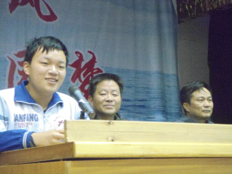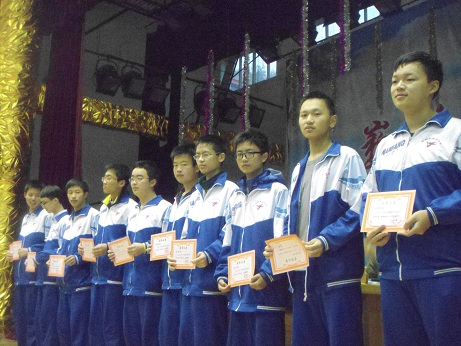 (本网讯:)11月25日下午第七、八节课,高二年级全体学生在艺体馆召开了期中考试总结表彰大会。会议首先由朱志雄主任总结半个学期以来年级组的纪律作风与学风及本次期中考试情况,并宣布了在本次期中考试中取得优异成绩及进步明显的学生名单。来自1306班的汪圣焘同学以805分的优异成绩获得英才奖,其余近百名学生获得不同项目的奖励。获奖学生依次有秩序地从两位校长手中接过获奖证书,脸上洋溢着青春的笑容。接着,夏立威校长作了重要讲话,他在充分肯定高二年级学生整体素质高、精神面貌与学习状态好的前提下,希望高二年级以期中考试为契机,加强年级组文化与班级文化建设,真正营造出“准高三”的学习氛围。陈其北副校长着重强调了过硬的纪律作风对学风的促进作用,希望尖子生的领头作用得以充分发挥,并提出在设立英才奖的同时,再设立一个能够激发更多学生积极性的奖项,希望年级组带领全体高二师生尽快进入高三状态。一个半小时的会议秩序谨严,气氛热烈,两位校长的讲话极大提升了学生的学习热情,对学生后阶段的学习具有提振士气的作用。