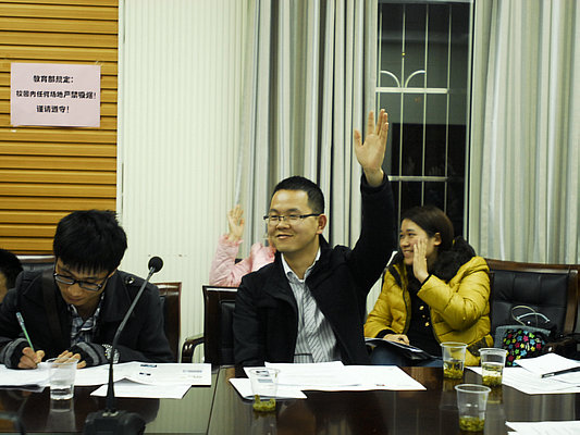 11月29日下午,南方中学召开数学教研组研讨会,会议紧紧围绕课程改革,并就今后学校在树立教师团队意识、培养学生自主学习,加强数学教研组建设,提高教师专业素养及对高考研究等方面展开研讨。