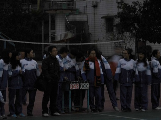 比赛中途,学校例行每日的降旗仪式,球员与观赛者均注目肃立
