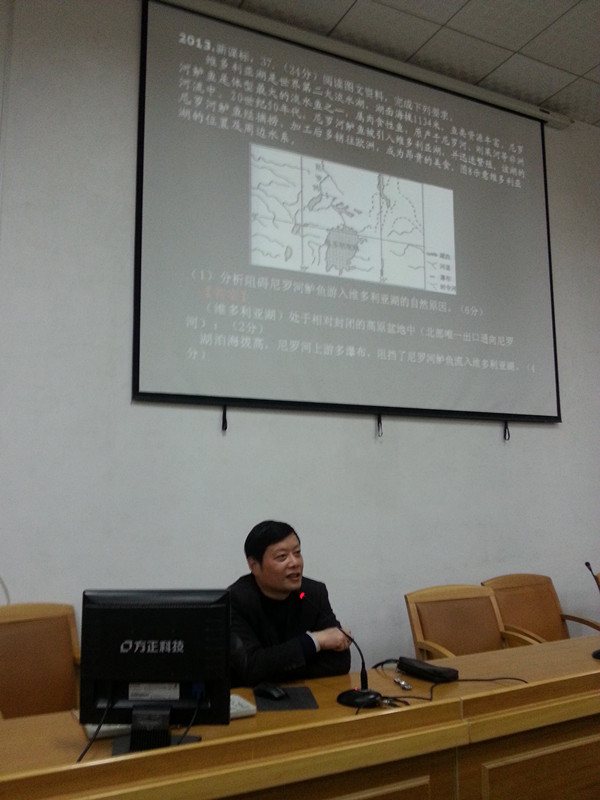 下午,师大地理教研组组长、湖南省地理特级教师、连续十年参加全国高考地理阅卷工作的资深地理教师扬帆先生给我校高三文科班全体同学作了题为《临场发挥 巧夺高分》的讲座。杨特结合自己多年的教学和高考阅卷经验,以丰富的案例告诉学生高考答题时如何做到规范答题。杨特说,高考答题必须要理清题意、从容应答。善于从题中捕捉信息,全面思考,切合原理,完整、专业、准确表述。只有这样,方能夺得高分。