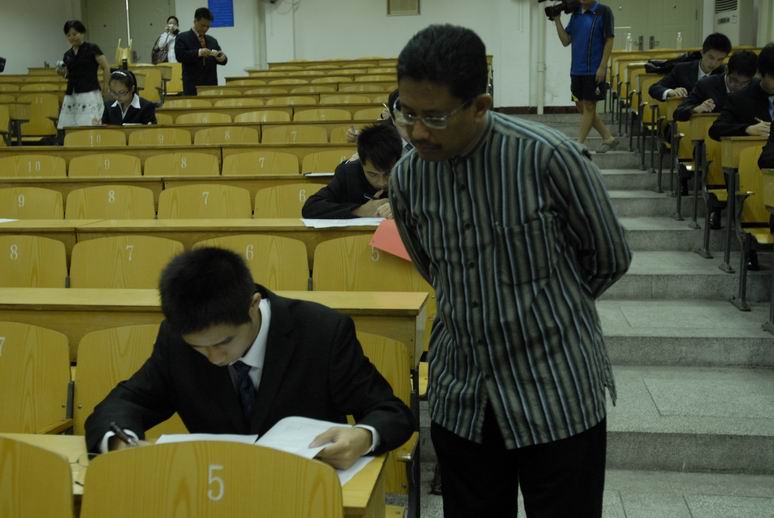 8月25日,马来西亚沙巴大学招生考试在南方中学举行,沙巴大学副校长一行7人代表沙巴大学负责此次招考工作。考试分为笔试和面试两部分,笔试科目包括英语和数学,面试按照每五名考生编为一组,由沙巴大学副校长和培训中心主任亲自主持面试。综合笔试和面试的结果,最终27名考生全部被录取,沙巴大学副校长现场为他们颁发了录取通知书,将于九月份赴马学习。