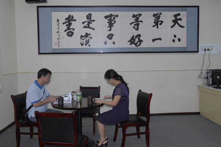 “清心轩”投资上百万打造,邀请了省内知名的的书法家、设计师进行了先期的设计,聘请一流的施工单位,在五天之内完成了全部工程,现已对教师开放。开放后的书吧将成为教师们学习提升、交流思想、集体备课和组织文化沙龙的场所。