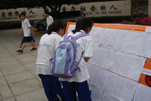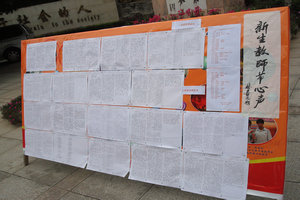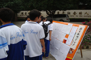 9月6日晚自习,高一年级的同学们进行了“感念恩师”2010教师节作文竞赛。夜空里下着微雨,教室里同学们有的低头沉思,有的奋笔疾书,一个个难忘的场景出现在脑海里,流露于笔端,并且和着同学们的款款深情呈现在优美的文字里,作为同学们在教师节献给老师们的最贴心的礼物。经过两天的评选,选出了一、二、三等奖和优胜奖,并且做成展板,向全校师生展示。南方中学党委书记林喜元同志非常热情地为同学们的作文展提字:“新生教师节心声”。