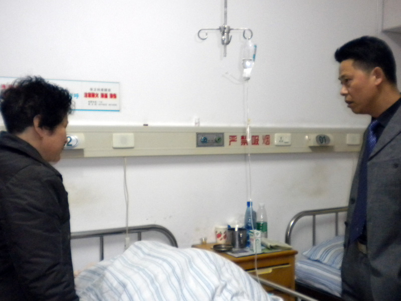 到331医院重病房看望慰问对口支援学校淞南中学一位患急性白血病学生——唐小华,并送上全校学生爱心捐款9700元,还将写有祝福的千纸鹤和鲜花送到枕边。