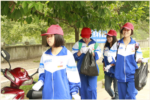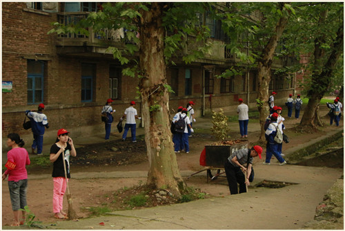 在那里,已经有来自株洲市机关事业单位的志愿者们在热火朝天的干活着。同学们被分为三组,一组负责在社区内部打扫和清理;一组负责清扫社区周围环境带及小道的白色垃圾;而最后一组则负责沿社区公路两边的保洁。