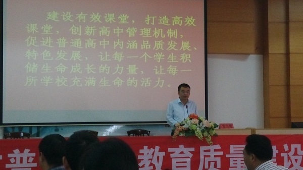 会上,我校被评为“2014年高中教育质量建设先进单位”和“2014年高中学业水平考试先进单位”两项荣誉。这是教育主管部门和社会各界对我校在2013~2014学年中,在高考、学考、学科竞赛、学科建设和课程改革方面所取得卓越成绩的肯定。夏立威校长代表学校领取了奖牌。教务处周一坪主任代表学校做了“夯实管理基础,聚焦课堂教学”的交流发言。
