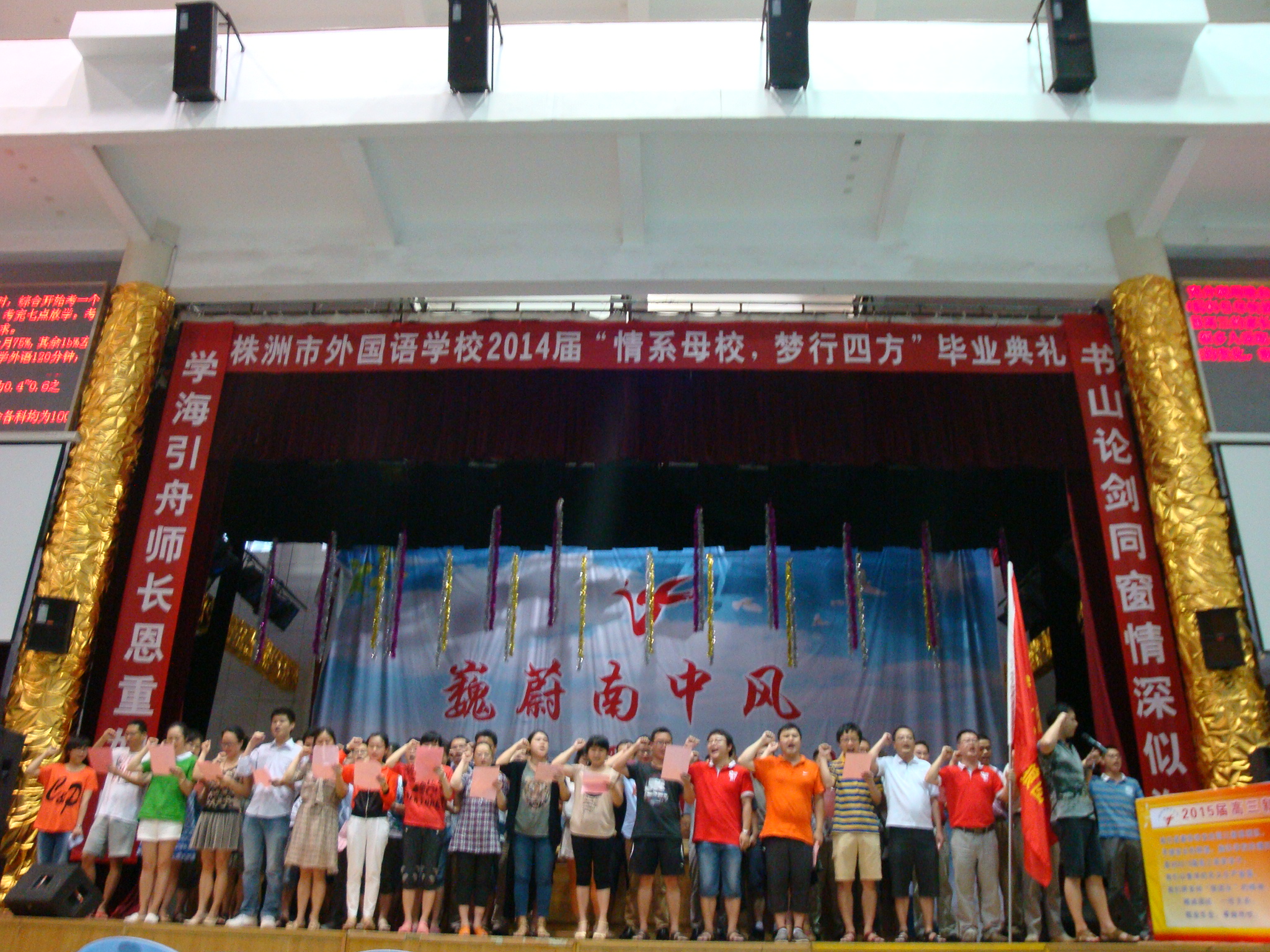 在高三“狼头”刘国勋代表高三年级做出表态发言之后。高三新一届“狼团队”所有成员上台进行了宣誓。他们的精神面貌、高昂的斗志和必胜的信心赢得了学生热烈的掌声。