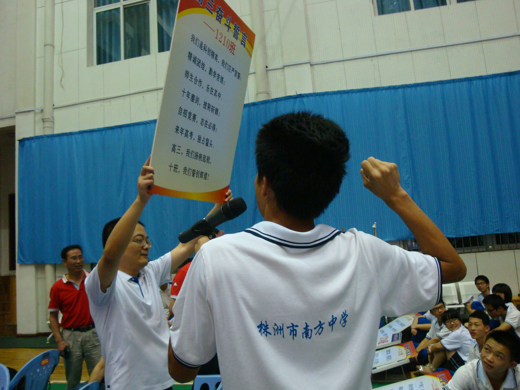 最后,新一届高三的全体14个班级都轮流进行了高三的宣誓。每个班学生的气势、信心、高亢的声音在体艺馆久久的回荡。这一切都表明新一届“狼团队”已经正式启程,瞄准高考,迈向辉煌。