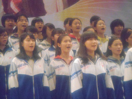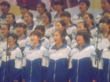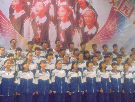(本网讯)11月10日夜,南方中学艺体馆灯火通明,歌声嘹亮,南方中学“三热爱”合唱比赛高二年级复赛正在有序进行。经过10月份的初赛,1304班、1305班、1306班、1311班、1312班、1313班、1314班从14个班级中脱颖而出,进入复赛。复赛水平明显高于初赛,1306班虽然人数少,却气势如虹,以准取胜;几个文科班各具特色,颇具实力。经过一个半小时的角逐,1304班、1306班、1311班、1313班、1314班携手晋级决赛。决赛定于11月20日举行。