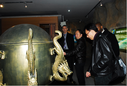 (叶校在讲解地理基地的地动仪如何探测古代地震)