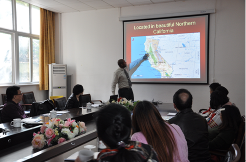 (向美国校长更细致的介绍我校情况和外事交流)