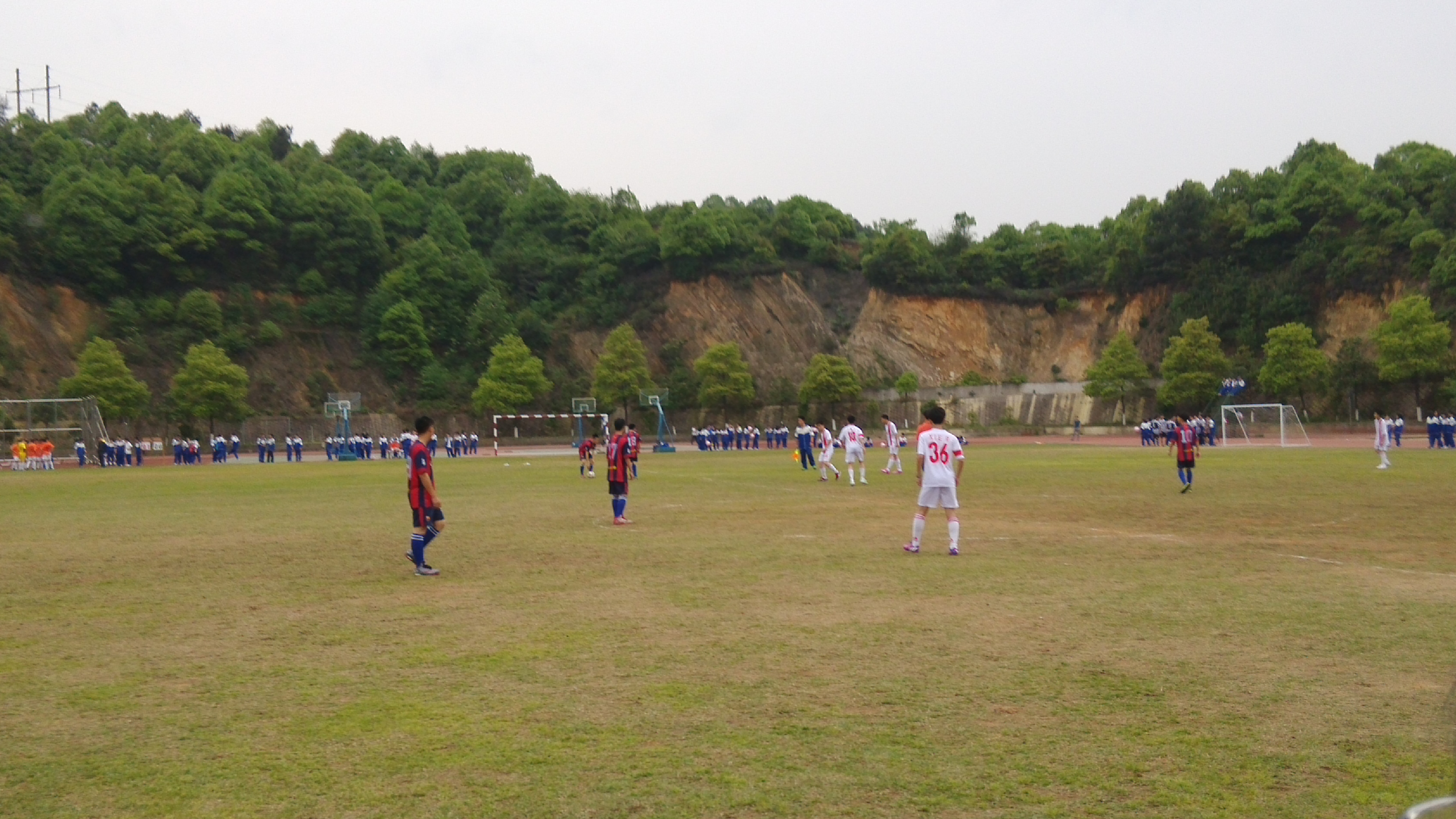 (本网讯)2015年4月24日下午5时,高一年级在山上操场开展了一场热火朝天的足球赛,比赛双方1411班和1410班的球员们分别身着白色和红色的球服,俨然是绿茵场上一道亮丽的风景线。