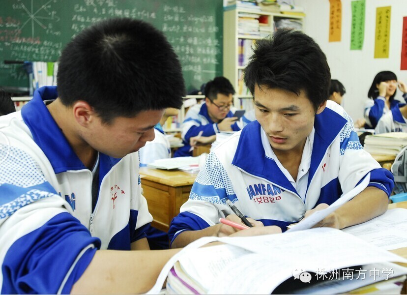 11月4日下午第二节课结束后,南方中学高三创新人才实验班的蒋新(右)正在为同学解答数学题。 通讯员刘娟摄