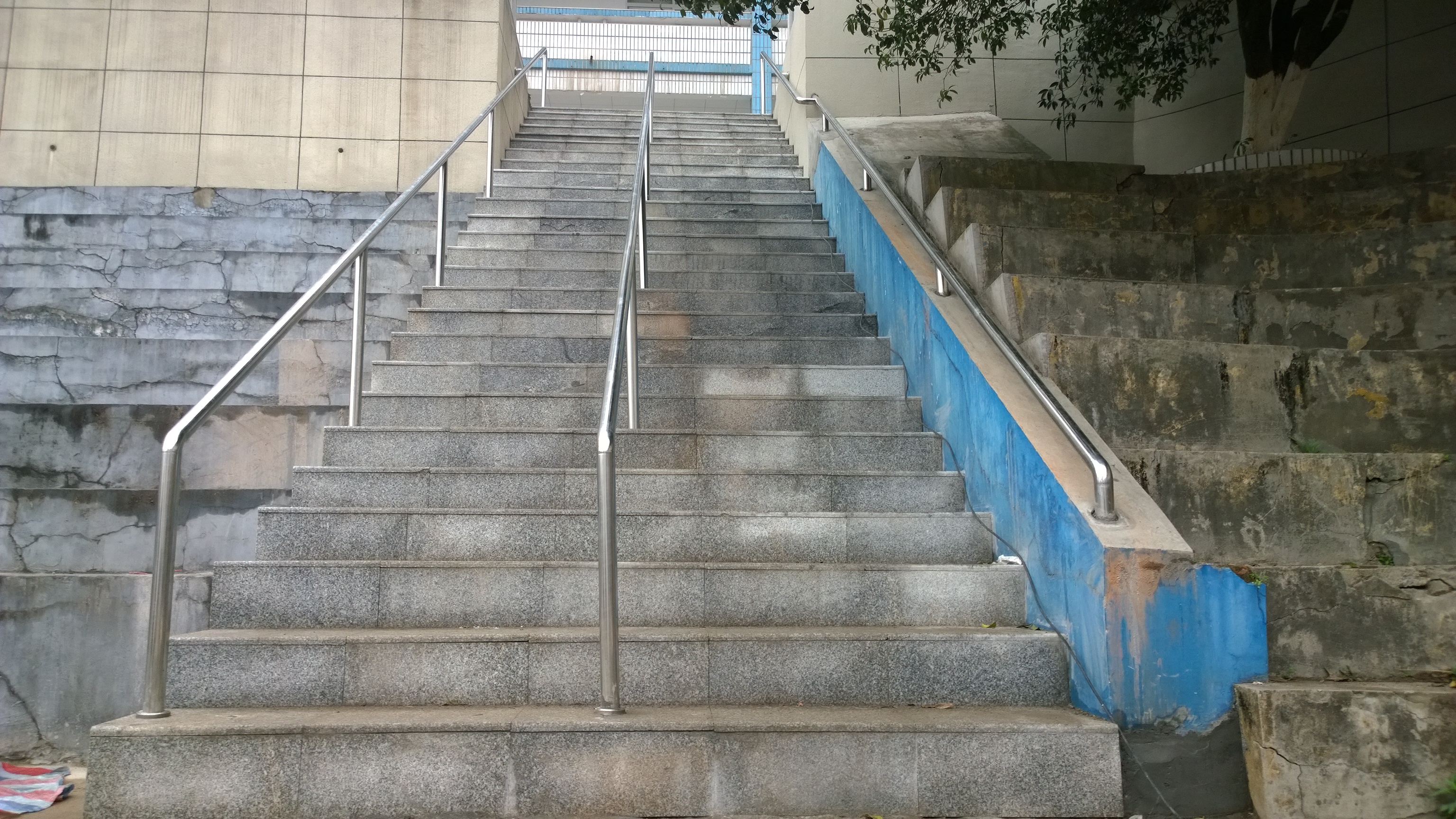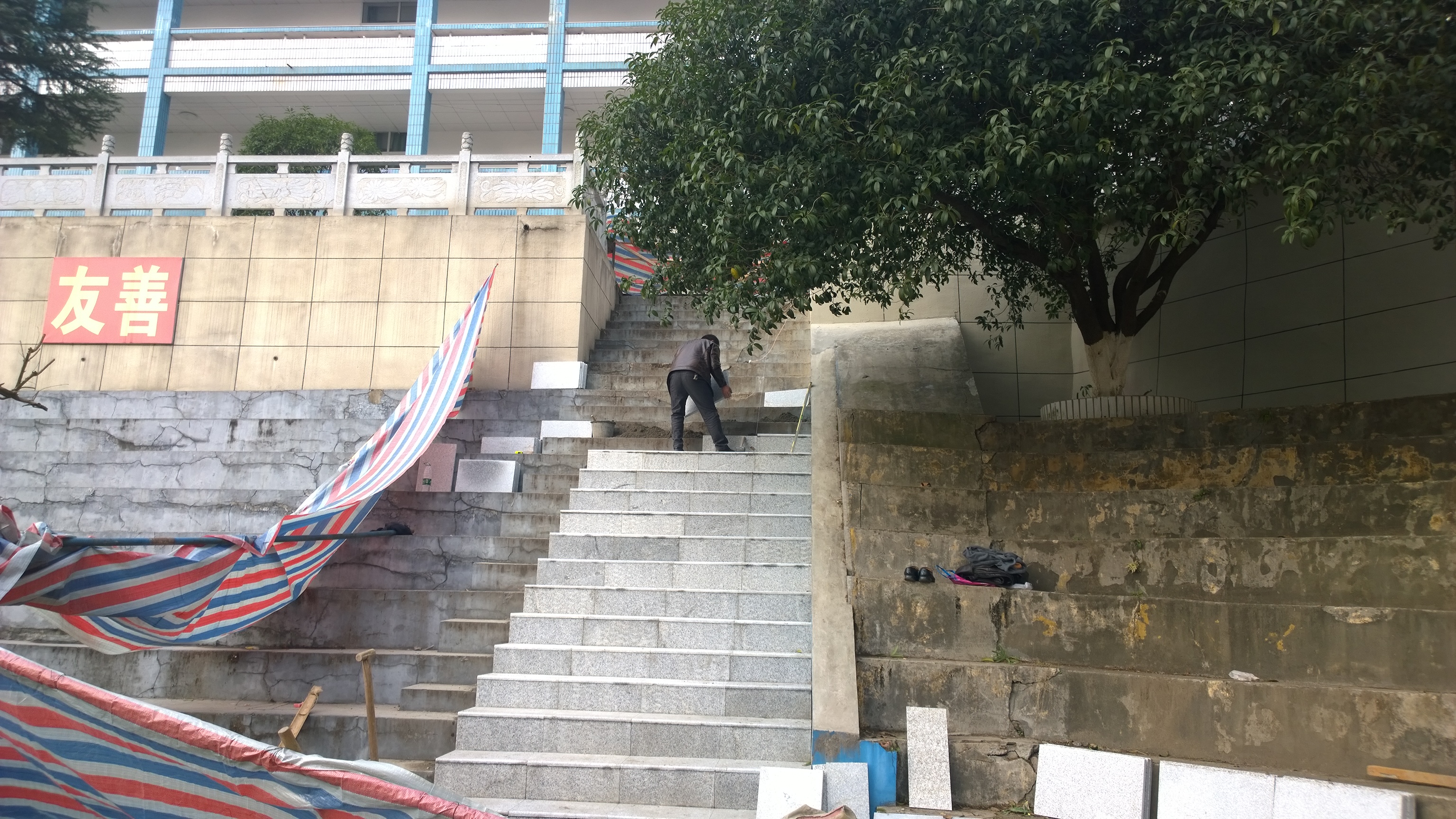 这两天,南中第一教学的同学会发现南侧阶梯大不一样了,“直是少人行”的南侧阶梯焕然一新,护栏靓丽,石板整洁,最重要的是——可安全通行了。