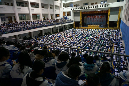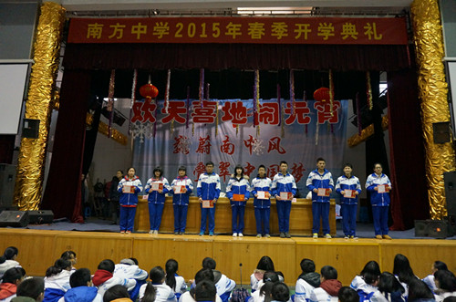 林喜元书记和陈其北副校长分别宣读了《南方中学2014年下学期先进集体和先进个人的表彰决定》和南方中学2014年下学期奖学金获得者名单。