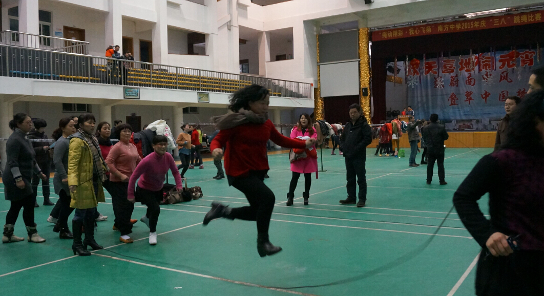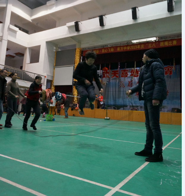 3月6日下午第八课一下课,全校女同胞们便兴高采烈地汇聚到校体艺馆参加“绳动精彩·我心飞扬”庆“三八”跳绳比赛。