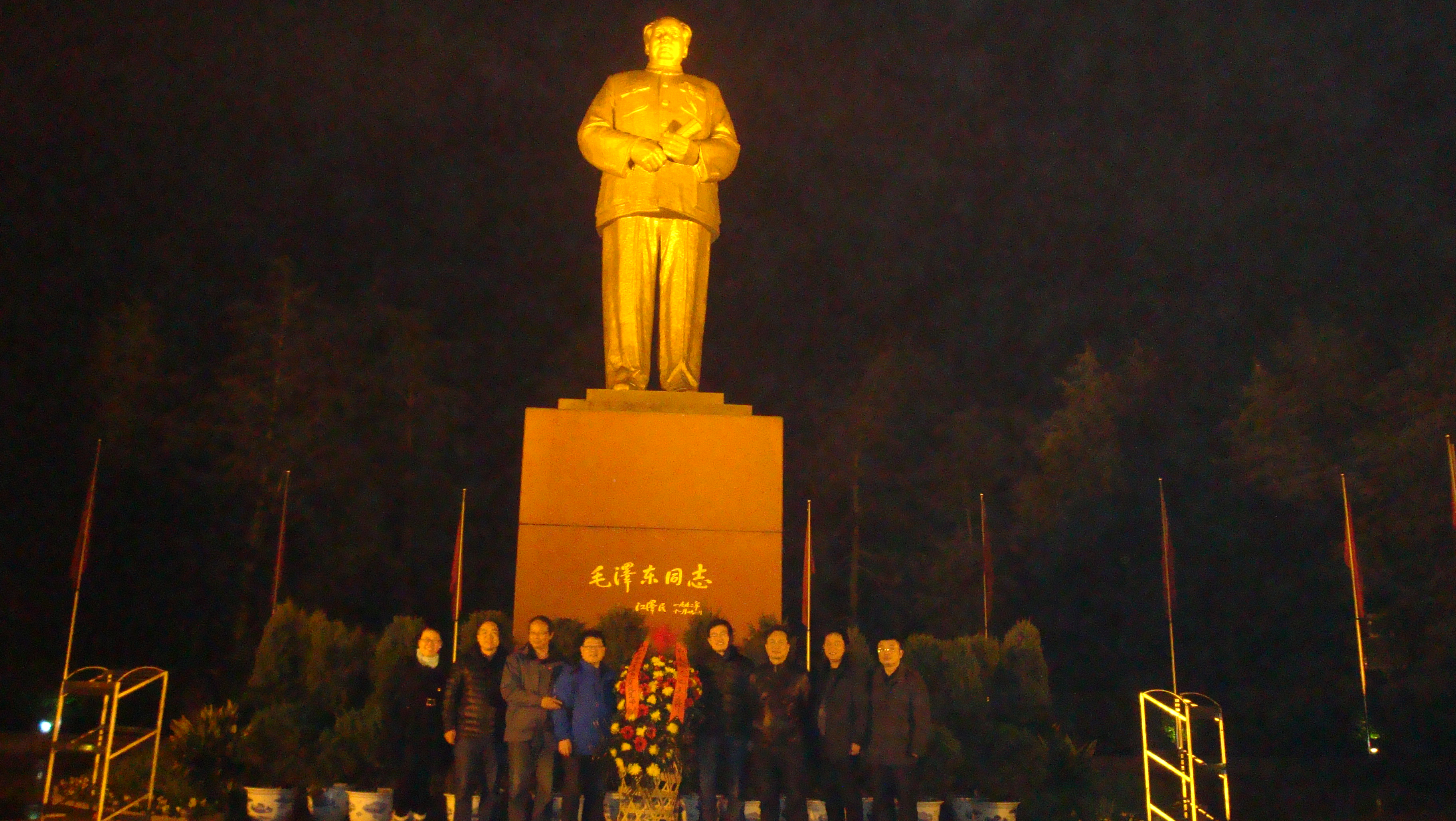 达到铜像广场后,夏校长和刘主任代表狼团队向毛主席铜像敬献了花篮。在向毛主席铜像三鞠躬后,全体人员围着铜像绕行一周以表达对主席的敬爱。