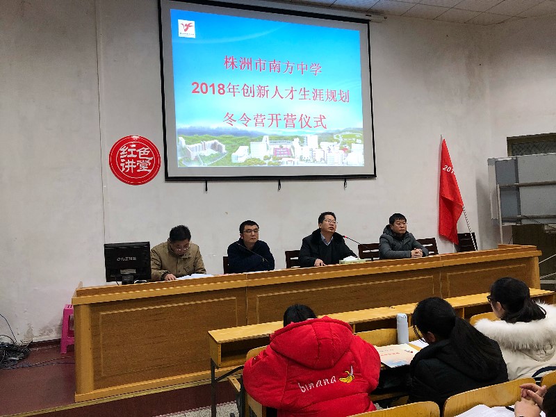 2月4日,南方中学2018年“创新人才生涯规划”冬令营开营仪式在知行楼多媒体教室举行,来自株洲地区近100名营员参加了开营仪式。米仁金校长、谭志中副校长出席仪式。