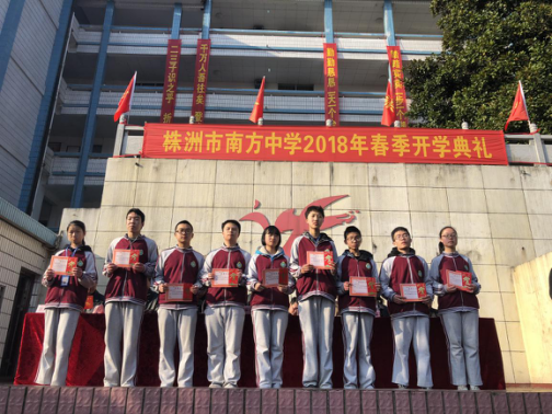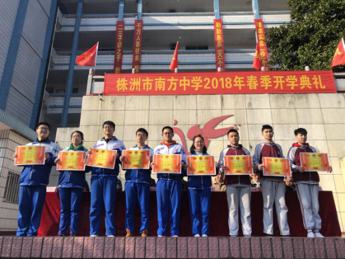 米校长在典礼上作了题为《有梦想,敢拼搏,把育人当成幸福事业;有志气,敢担当,把学习当成生活乐趣》的开学致辞,他首先肯定了南中过去一年所取得的成绩:荣获“全国国防教育示范校先进单位”“全国青少年校园足球特色学校”“湖南省文明单位”“湖南省中学生国际文化交流优秀单位”“2017年高中教育质量建设先进单位”“2017年高中学业水平考试先进单位”等等,各个年级的工作重点有亮点、有突破;面对2019年搬迁新校址这件学校发展史上具有里程碑意义的大事,米校长提出新一年的学校规划:提升学校核心竞争力,让每一位师生都获得成功;在新的机遇与挑战面前,米校长分别寄语老师和学生:有梦想,敢拼搏,把育人当成幸福事业;有志气,敢担当,把学习当成生活乐趣!
