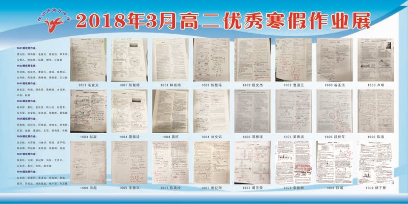 转眼春节已过,寒假结束,新的学期开始了。开学第一周,为巩固假期的学习效果,激励同学们的学习热情,高二年级进行了优秀寒假作业展评活动。各班选出十份作业送年级评审、筛选,最后将评出的优秀寒假作业做成展板展示。