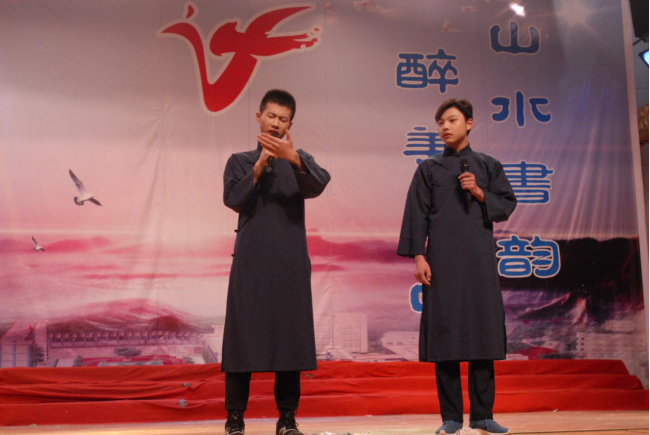除了歌舞类节目,语言类节目也成为这次演出的亮点。从初选、复赛到正式汇演,同学们的准备时间不足三天时间,相比需要艺术特长或者较长排练时间的歌舞,相声和朗诵更为“民间”,诙谐的表演让台下观众们忍俊不禁,也足见参演学生的语言功底。