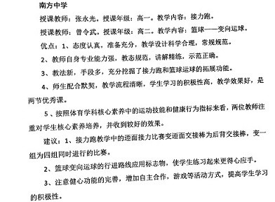 最后就体育课的教学情况表扬了授课的体育老师,特别对我校的授课教师张永光、曾令武进行了表扬。