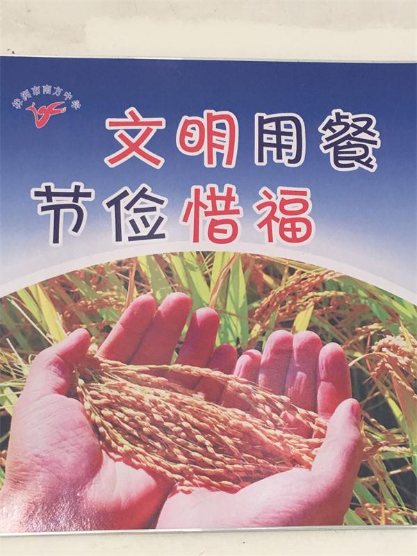 让勤俭节约从食堂开始。古诗有云:谁知盘中餐,粒粒皆辛苦。在每日就餐的时候,是教育学生养成勤俭节约品质和习惯的最佳时机。南中食堂通过宣传性的标语,倡导学生理解“盘内一分钟,厨内更多功”的内涵,让学生明白“倒下的是剩饭,流走的是血汗”的道理,使他们懂得珍惜粮食,远离浪费,养成勤俭节约的良好习惯是每个公民必须努力的方向。