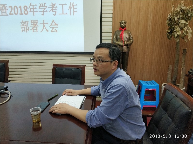 谭志中副校长指出学生的问题就是老师的问题,面对问题,老师要有危机感,作风端正,责任心要强,把学考辅导落到实处,细致梳理,夯实基础。最后米校长作了总结性发言,从更高的层次提出要求,老师的教学关系每个学生的未来,要让每个学生都成功,老师要端正态度端正作风,“学高为师身正为范”,要用心投入,把每一个学生的成长放在心上,践行让每一位师生都获得成功的办学理念。