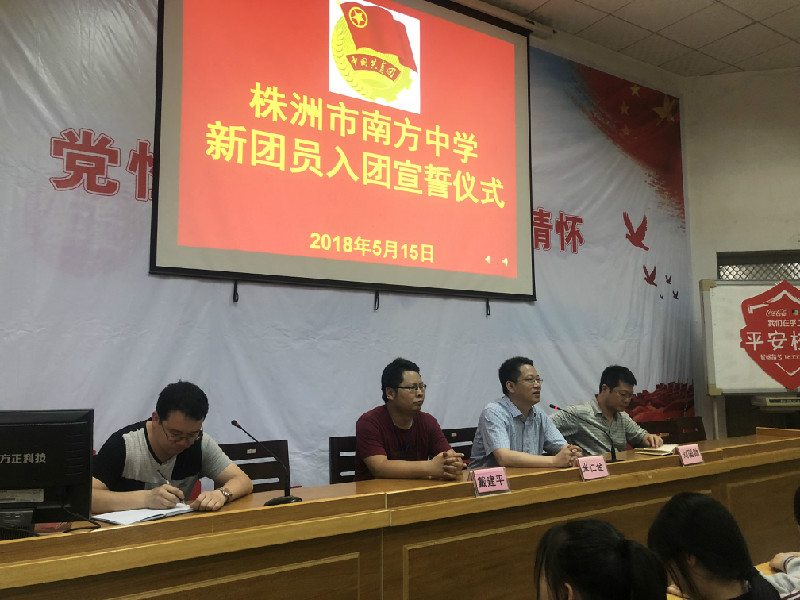 “马克思为人类做出的贡献不容怀疑,他的事业是因为有一个强大的组织在支持,你们要获得一个组织……”株洲市南方中学校长米仁金对该校的89名新团员这么说。5月15日下午,株洲市南方中学高一的89名新团员在多媒体教室举行入团宣誓仪式。学校校长兼党委副书记米仁金、学生科科长刘国勋、高一年级主任戴建平参加此次活动。