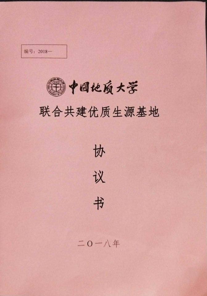 2018年5月15日,中国地质大学“优质生源基地”挂牌仪式在我校进行,同时签定了两校联合共建“优质生源基地协议书”。中国地质大学材料与化学学院院长夏帆博士、院办公室主任李晓晔、学院学工组白振洋老师及我校米仁金校长、工会主席曾四喜、招生办主任庞宇新出席挂牌仪式。