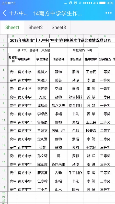 在刚刚结束的由株洲市教育局举办的“十八中杯”市中小学生美术作品展演活动,我年级学生参赛作品全数获奖。此次展演活动中我校高一、高二年级被选拔上交的作品率是上交作品总数的80%!其中:一等奖5个,二等奖2个,三等奖5个。