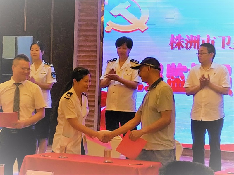 6月27日上午,陈其北校长代表我校参加了株洲市卫生计生监督执法局党总支组织的党员监督员签约仪式并接受授牌。
