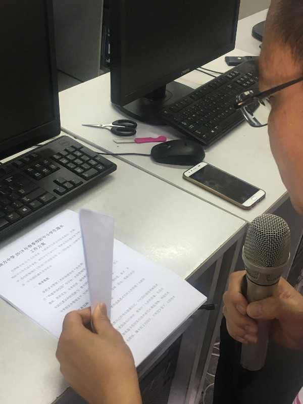2018年6月25日,进入期末,学生即将放暑假,学生科对在校学生再次专门进行预防溺水安全教育。此次防溺水安全教育以广播会形式进行,由学生科副科长邓必为宣讲。