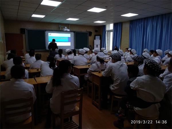 严防严控食品风险,规范员工操作程序,确保师生饮食安全。株洲市南方中学邀请食品药品安全监督市场管理局芦淞分局李卉副局长,及胡晓江所长,王梦伟所长等食安专家人士,自3月22日起,分三个专题,给食堂从业人员做了一次全面的食安知识培训。
