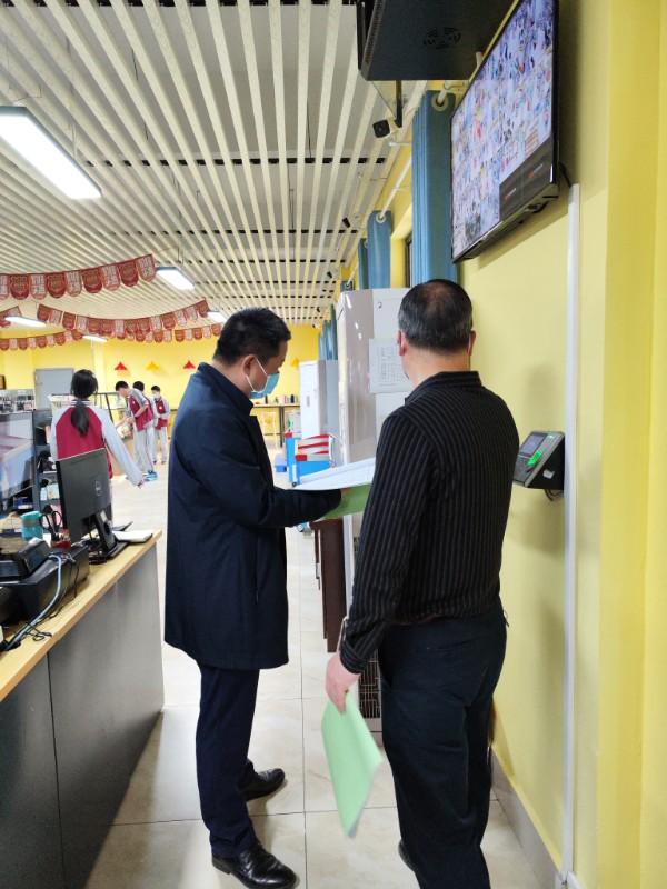 党委书记、校长米仁金、党委副书记张要武、副校长韩永斌、张郃一行深入食堂、超市、科室、年级检查学校防疫工作,首先实地查看了门岗管理情况,米校长强调:“要做好人员入校管控,严禁外来人员入校,入校人人要量体温。”接着米校长一行对校园环境清扫、消毒进行检查。米校长说:“良好的卫生环境是做好防疫工作的必要条件。”对校园卫生存在的个别卫生问题,米校长要求物业公司立即做出整改。学校领导还对宿舍、班级通风消毒、体温登记等情况进行了检查。对防疫物资的库存情况同时进行了检查。校领导对科室、年级疫情防控工作做得好的给予充分肯定,对有松懈现象的年级科室给予了批评并要求立即整改到位。