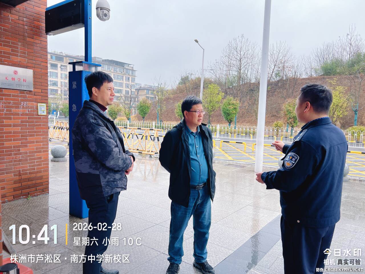 2月28日,株洲市南方中学开展校园安全隐患专项排查行动。此次排查由李平军副校长带队,董家段派出所张所长及学校各部门负责人共同参与,对校园重点区域进行全面细致检查。