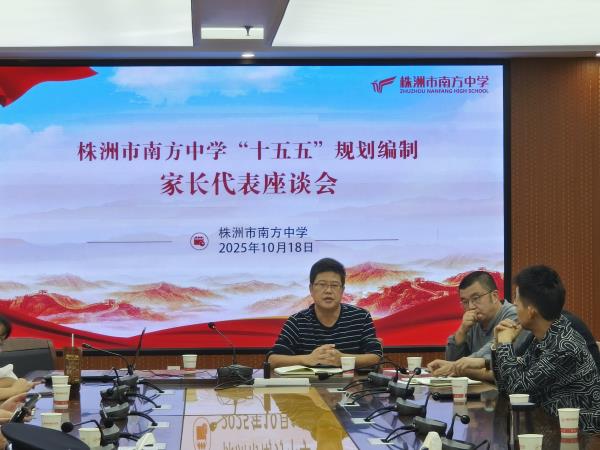 2025年10月18日上午,株洲市南方中学在振铎楼报告厅召开了“十五五”规划编制家长座谈会,共谋学校发展新蓝图。会议由南方中学招生交流部主任周一坪主持。学校党委委员、副校长李平军,学校党委委员、副校长胡孝武,学生发展部主任邓必为、团委副书记李沛婕、高三年级主任陈恒业和部分家长代表参加了此次座谈会。