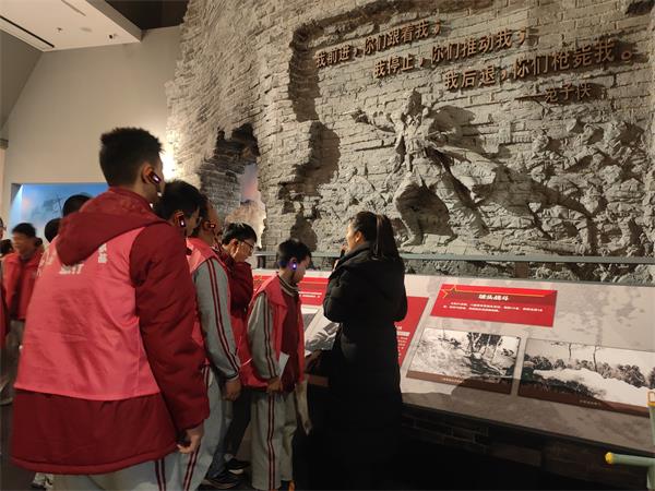 第二站,同学们参观了百团大战纪念馆。踏进山西阳泉百团大战纪念馆,肃穆与震撼顷刻盘踞心神。470余幅斑驳的历史图片,2000余件沉默的实物遗存,硝烟弥漫的场景复原……同学们直面历史的征程,不仅是重温烽火岁月的洗礼,更是对灵魂深处的一次淬炼。站在新时代的起点回望,抗战精神召唤着我们,传承不仅需要缅怀,更需将其化为脚踏实地的担当。身为当代中学生,当铭记苦难辉煌,以百折不摧的坚韧,努力学习报效祖国。让先烈鲜血染就的旗帜,在我们手中猎猎作响,永远飘扬于复兴征程之上。
