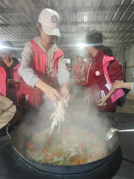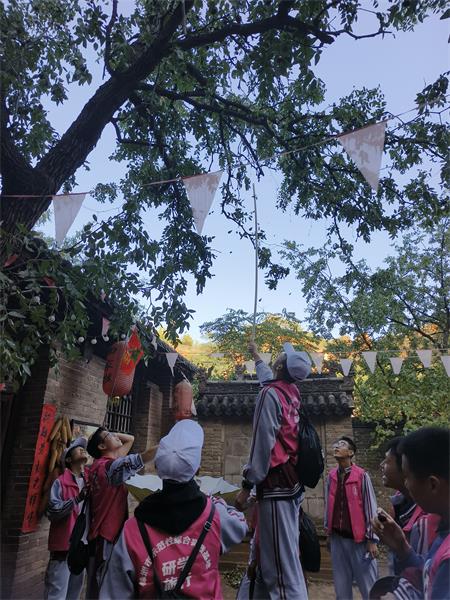 最后,同学们来到后沟古村。踏入后沟古村的那一刻,黄土高原的粗犷与农耕文明的厚重便扑面而来。斑驳的窑洞依山而建,石磨的凹痕里沉淀着岁月的痕迹,古村的排水系统在阳光下泛着幽光,仿佛在无声诉说着“天人合一”的生存智慧。在这里,同学们沉浸式体验山西特色活动--打枣,亲手制作山西特色美食“和子饭”。