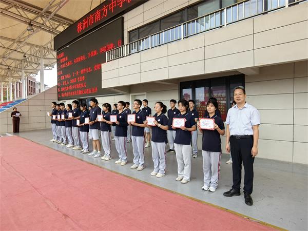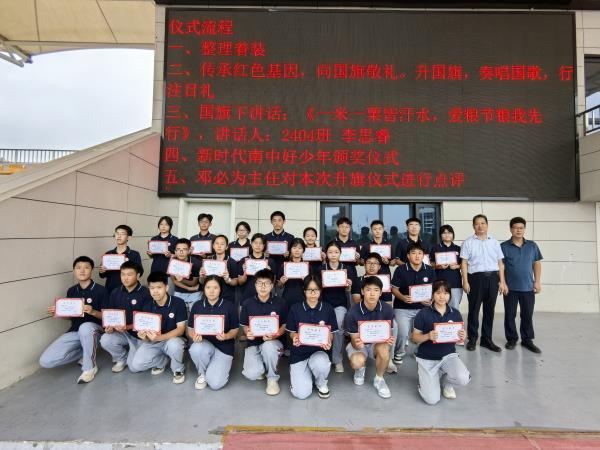 学校升旗仪式上,对“南中新时代好少年”进行了表彰。
