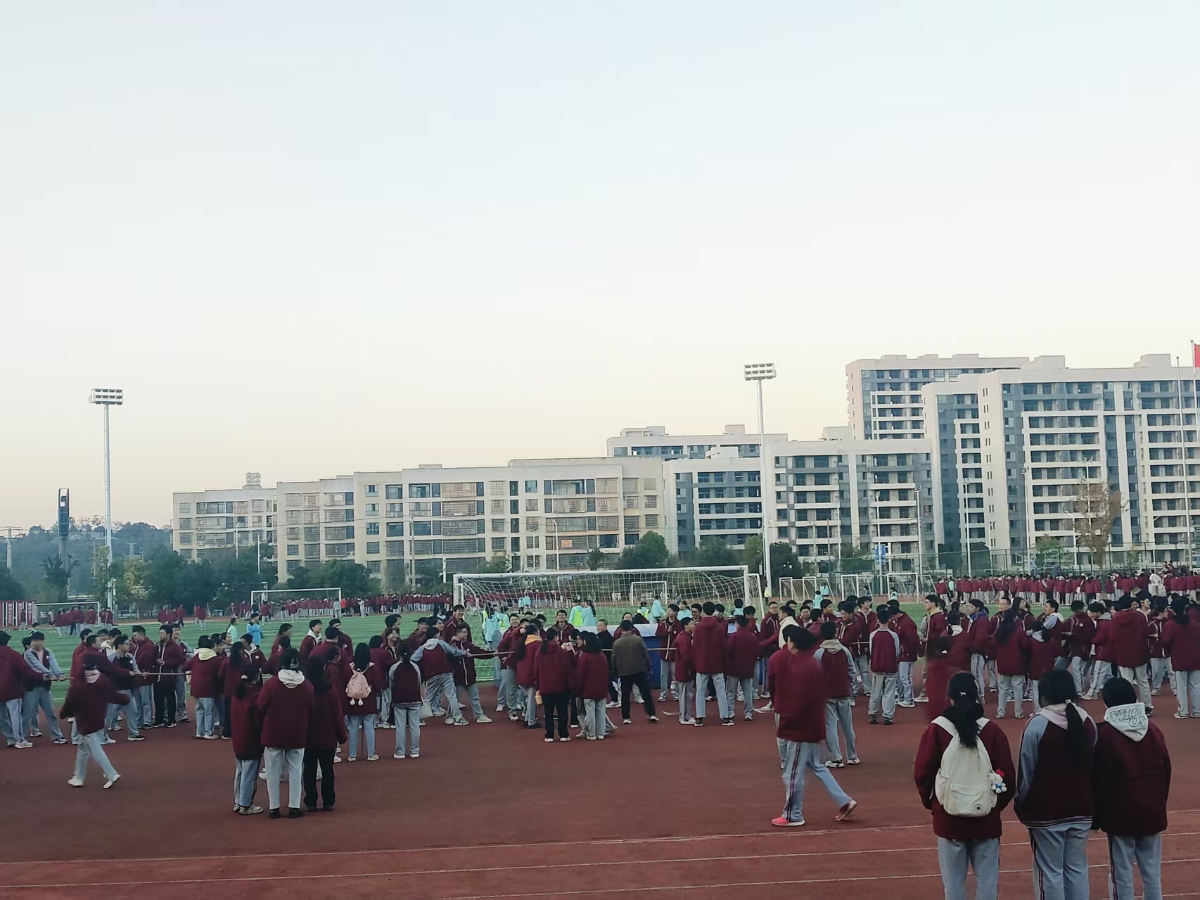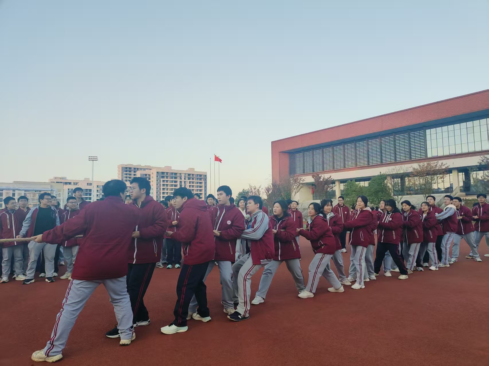 书山题海勤为径,亦需张弛少年心。为缓解高三年级同学紧张的学业压力,丰富课余生活,高三年级组于11月19号在操场举行了以“释放压力,凝聚力量”为主题的高年级解压拔河比赛。