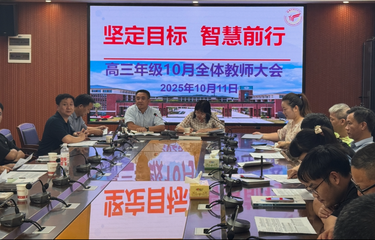 秋意渐浓,奋进当时。为进一步凝聚共识、明确方向,近日,株洲市南方中学高三年级隆重召开了以"坚定目标,智慧前行"为主题的十月全体教师大会。会议由年级组精心筹备,全体高三教师齐聚一堂,共同总结前一阶段工作,谋划下一阶段备考策略。